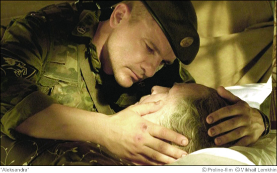 The title character in Russian director Aleksandr Sokurov's Aleksandra, played by 1950s and 1960s opera star Galina Vishnevskaya, is old and proud and confident. That's enough to set her apart from most war-film women of her age, who tend to be victims left sobbing after the shooting stops, or token symbols of home in lonely grunts' dreams. For reasons that never really become apparent, this grand dame is visiting her grandson, Denis (played by Vasily Shevtsov), a captain in the Russian army who is stationed in a remote, desert-bound camp in Chechnya. The setup could almost furnish a comedy (anyone remember "Your Mother Wears Combat Boots"?), but those familiar with Sokurov's brooding and oddly effecting films will know better than to expect any laughs.