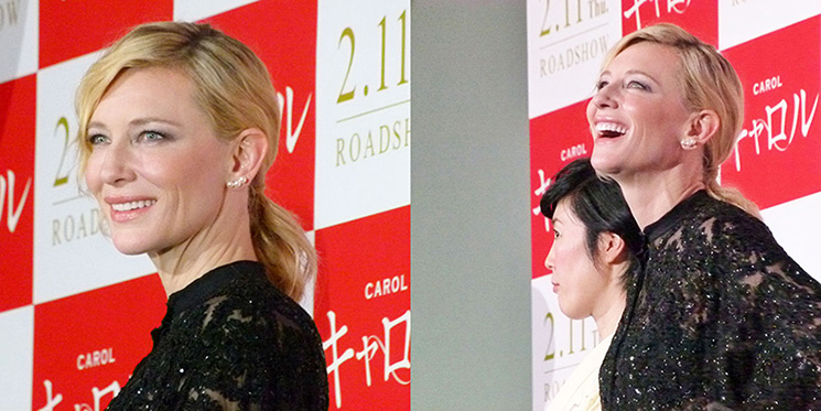 クリス・ペプラー:ケイトさん、ようこそ日本へ、そして、アカデミー賞主演女優賞ノミネート、おめでとうございます。そして今回受賞されましたら、『アビエイター』(04)の助演女優賞、『ブルージャスミン』(13)の主演女優賞に続き、3度目のオスカーということになるわけですけれども、今回はルーニー・マーラさんとのダブルノミネートということで、ぜひ一緒に受賞して頂きたいという気持ちでございますが、ルーニー・マーラさんと一緒にノミネートされたお気持ちはいかがですか?