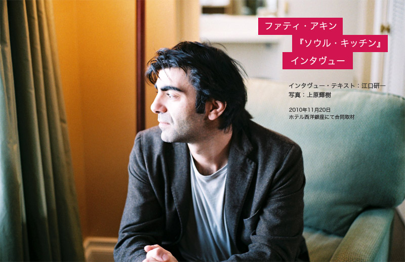 ![]() Outside In Tokyo(以降OIT):まず、よく聞かれるとは思うのですが、なぜこのようにポジティヴな映画を撮ろうと思ったのですか? FATIH AKIN(以降FA):それは、そういう気分だったから。『ソウル・キッチン』のような映画をやることがね。僕は一人の友人を亡くしていた。彼は僕の先生であり、師匠であり、指針であり、友人でもあった。彼は『愛より強く』『クロッシング・ザ・ブリッジ』『そして、私たちは愛に帰る』のプロデューサー(アンドレアス・ティール)だった。でも彼は『そして、私たちは愛に帰る』の撮影の最後の週にイスタンブールのホテルで亡くなった。僕はその後、悲嘆に暮れた。彼は本当に親しい友人だったから。もし生きていたら、今日も一緒にこの場にいると思うんだよね。実際、彼は日本で生まれたんだ。ドイツ人だけど、父親がエンジニアで、日本で仕事をしていた。だから彼も日本語を話せたんだ。とてもグローバルな人だった。とにかく、僕は苦しみ、自分の頭にあった映画の計画のことなど考えることができなくなった。これ(『ソウル・キッチン』)はだいぶ前の、2003年の秋に書いた脚本だ。彼(アンドレアス・ティール)は脚本を熟知していたし、ずっと映画にしてほしいと言っていた。でも僕はそこまで脚本を信じきれていなかった。自分が書いたのにね。シリアスさがまだ足りないし、外からの自分の評判も不安だった(笑)。でも彼は、人の言うことは気にする必要はないと言っていた。なぜそうなるかなんて。とにかく可能な限りいい映画にすればいいんだからと。彼の最後の言葉は、成功に隷属するなということだった。僕にはそれがとても大きな教訓になった。若い映画作家にとっては特に。 OIT:2003年に書いたもので、それを彼に推してもらったということですが、それを実際に作ろうと思った決め手は何でしたか?