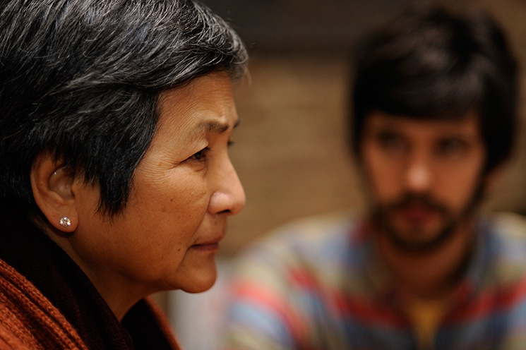 ホン・カウ:音楽に関しては自分の狙いがありました。最初はゆっくり映画が始まる、映画的にも、音楽の雰囲気的にも、これは時代劇じゃないかっていうような錯覚を覚えるほどゆっくり進んでいくのですが、次第に現代の話なんだなということが分かる。更に進んでいくとそこには母親の回想のようなもの、映画のテーマのひとつでもあるわけですが、あたかも過去と現在が重なりあうような、そういうものを冒頭でパンと表現したかった。音楽は、そうしたものの大事なひとつの要素ですね。なぜ李香蘭なのかというと、ここに合うなと思った音楽のリストが何曲かありました、50年代に流行ったような北京語の歌を何曲かリストアップしたんですけど、僕達の映画はすごく低予算だったので予算的に見合う楽曲だったっことが大きな理由のひとつです。その曲を使って映画が出来上がった後、李香蘭という人は実は日本人で、すごく歴史的にも興味深い人物だということを後で聞いて、そうだったのかと驚いたのです。