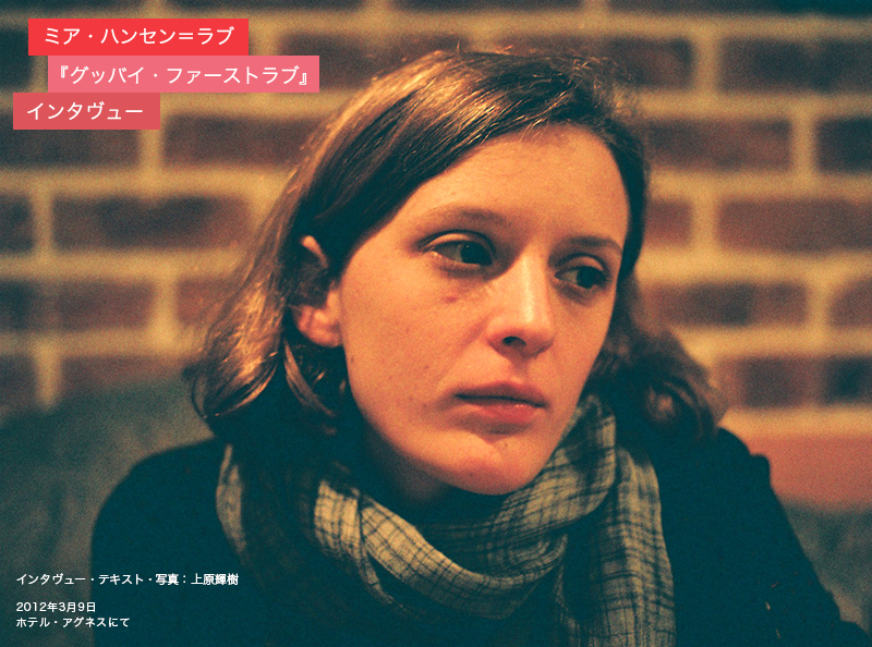 そんな珠玉の作品を撮り上げたミア・ハンセン=ラブが、東京日仏学院で行なわれた「フランス女性監督特集」のために来日したのは、2012年3月のことだった。エスパス・イマージュで行なわれた、ドミニク・パイーニ氏とミア・ハンセン=ラブのトークショーは、満員の観客で溢れかえり、個人的な体験が投影された『グッバイ・ファーストラブ』について語るミアのトークは、とても親密なものだった。映画作家とこれほど親密な時間を共有することはそう多くはないのではないか、と多くの観客が思ったに違いない。そうして、その翌日に私が行なったミアへのインタヴューは、自然と、前日のトークショーでの発言に触れることも多くなった。