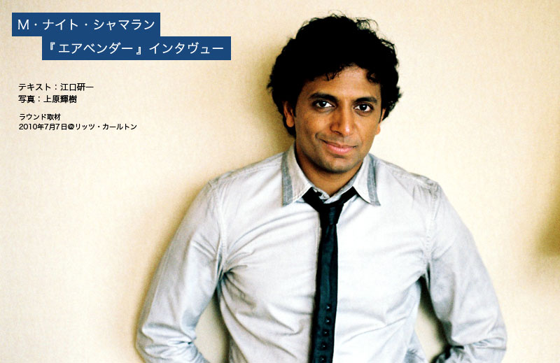 『シックス・センス』『アンブレイカブル』『ヴィレッジ』などを代表作に、サスペンス、ミステリー、SFなど様々なジャンルに挑んできたM・ナイト・シャマラン。だがいつしか、観客は自ら期待しながら、“どんでん返しの名手”という賛辞から、またどんでん返しか、という声も聞かれるようになる。だがそんな声をよそに、シャマランは意欲的に、どんどん作品を生み続ける。そして興行的な成功には必ずしもつながらないジレンマを抱えながら、パート2、パート3まで、シリーズ化を想定した新作『エアベンダー』を発表。テレビ・アニメとして放映されていた同シリーズの映画化に踏み出したことを意外に思うかもしれないが、彼はファミリー層に愛された『スチュアート・リトル』の脚本も書いているのだ。だが、映画自体は、もうひとつ彼の手腕が発揮されていないのでは、というのが正直なところ。それでも、そんな彼がそこに傾ける野心やエネルギーには注目したいと思い、今回はグループ取材に参加させてもらった。短い時間ながらも、彼の前向きなエネルギーのベクトルを感じ取ることができた。そして、必ず、彼なりの作品を生み出すことを予感させた。