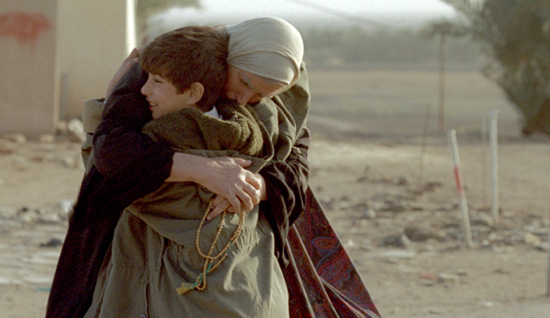 イラク出身の映画監督、モハメド・アルダラジーは『夢(Ahlaam)』という第1作で一度来日している。その作品で評判を獲得し、現在はイギリス在住の監督の2作目は静かでいて野心的な映画となっている。監督がここでも語るように、音楽もほとんどなければ、台詞が交わされることもほとんどない。戦争に駆り出され、22年間、行方不明となったままの息子を、父の姿を知らない孫と一緒に探す旅に出た祖母の物語だ。歩くのも大変な老婆と彼女の手を引く孫は、荒涼とした大地と、ある意味無法状態とも言える中、一度知り合いから彼を見たと報せのあった刑務所や集団墓地を回っていく。車に載せてもらえばお金を取られ、バスに乗れば、息子だけが乗り、年寄りは置いて行かれそうになる非情な移動が続く。唯一の救いは、クルド人の彼がアラビア語を話せること。2人は行く先々で困難に立ち向かい、息子=父がいると思われる場所をまるで巡礼のように尋ね歩きながら、彼らを虐げる側に回ったものの今は自責の念に駆られる兵士などと出会い、少年は幻想の古都バビロンに想いを馳せる。