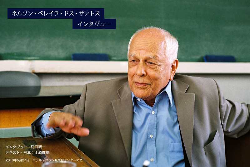フランスのヌーヴェルヴァーグ、イタリアのネオレアリズモと同時期にその影響を受けて生まれたブラジルの映画運動“シネマ・ノーヴォ”の特集上映が、現在、渋谷イメージフォーラムで行われている。OUTSIDE IN TOKYO は、今年5月にアテネ・フランセ文化センターで行われた「ネルソン・ペレイラ・ドス・サントス監督作品特集2010」で来日した監督にインタヴューを敢行、今回の「シネマ・ノーヴォ特集」上映を祝して、シネマ・ノーヴォ以来現在に至るまでブラジル映画を牽引してきた、イーストウッドやゴダールよりも2歳年上の映画作家ネルソン・ペレイラ監督のインタヴューを掲載します。実は、90分予定していたインタヴューが、20分で打ち切りになるといういわくつきのインタヴューとなってしまったので、今まで掲載を見送ってきたが、「シネマ・ノーヴォ特集」上映という素晴らしい機会をひとりでも多くの観客の皆さんにご覧頂きたいという願いから、内容的には中途半端ながらも、本インタビューを掲載することとします。