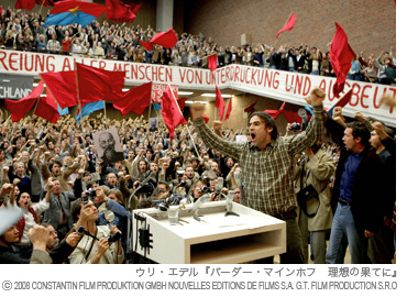 うん、観たよ。おもしろい映画だけど、全く違うところから出ている映画だと思う。ドイツ史で言えば極端にローカルだから。そして映画の足りない部分はーーーもちろん、おもしろかったし、そこここでしっかりした要素を感じられるけど、足りないのは、バーダー=マインホフの政治をちゃんと伝えていないところかな。それに資金をどこから調達していたかなど、国際的なコネクションも明らかにされていないし、結果的に、命令系統の源がどこだったのかも見せていない。東ドイツとのコネクションも語れていない。中東とのコネクションも触れられてない。訓練所にいる姿は見えても、それがどこにあるのか、その政治の内側の論理も見えない。だからいろんなレベルで強い映画ではあるけど、僕らがやろうとしているものとは全く着眼点が違うと思う。あと、日本赤軍を描いた若松孝二監督の日本映画も観たけど、それも違う視点だった。それを見て、とてもエキサイティングで興味深いし、映画のある要素に興味をそそられるんだけど、これもまた違うタイプの映画だったと思う。