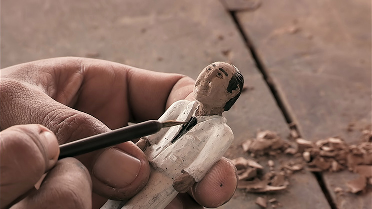 RP:そうですね。歌も聴こえてきますし、クメール・ルージュの非常に軍隊的な音楽と同時に、価値が分からなくても非常に士気を高揚させるようなアコーディオンが聴こえたり、中国の革命を思わせ、いつも階級闘争というか、自分たちの政党を正当化するような、感情もなければ愛情もない。こちらはギターがあったり、愛や喜びの声や感情を表す声が乗っていて、それが人間なんですよね。ポップやロックやクラシックとか、そういう多様性が人間なんです。だから私たちは人間的に多様で、あっちはスローガンという一枚岩なんですね。こっちはちゃんと表情も表現も豊かなのに、プロパガンダは表現もなく、多様性もないという、一枚岩でモノトーンなものです。アイデンティティもなければ多様性もない。なので、『消えた画 クメール・ルージュの真実』の中で私がやりたかったことは、そういうプロパガンダのアーカイブ映像と対峙させる形で、矛盾を暴くような形で人間の豊かな、本当の人間の本質を持った音であるとか、粘土人形を対峙させて、プロパガンダの虚をつくようなことをしたかったのです。