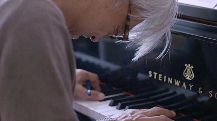 スティーブン・ノムラ・シブル:それは不思議と、最初に撮り始めた頃から、頭の中にはあったんですね。もちろん、坂本さんが80年代に作られた『CODA』というアルバムも大好きですが、それは意識せず、主に2つの理由があります。世の中が何らかの“最終楽章”に向かっているように感じられる。説明してしまうと、例えば、福島の原発事故のことや、それだけではないですけど、色々と感じられる、感覚的なことがあって、そこで音楽家と出会って始まることがある、というのがまずひとつ。もうひとつが、先程の構成として、新たな音楽が完成するところ、そこが映画の最終到達点としてある、最後はそこでガラッと変わってほしかったんです、最後は言葉も理屈もなくて、ピュアな音楽表現で終わりたかった。それを意味して“CODA”と付けていましたが、途中で、タイトルを変える、変えないという話も出て来たんですよ。ご本人がご病気になるという、予期せぬ事態が起きてしまったものですから。
