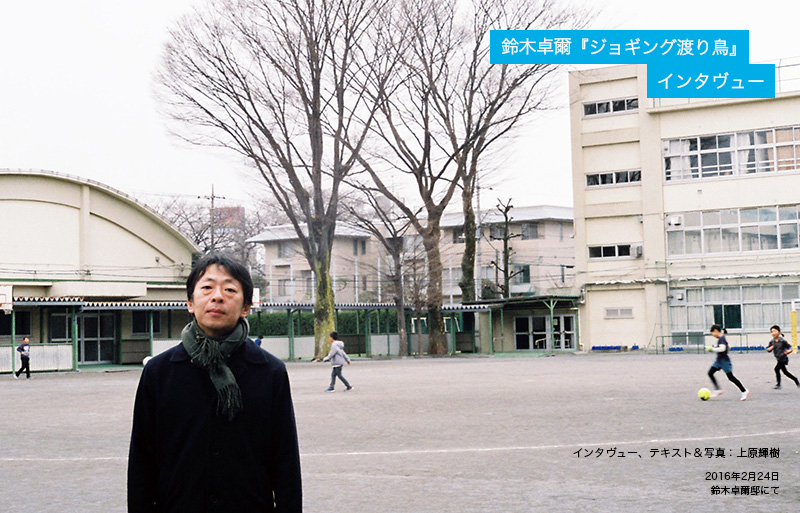 水木しげる的不穏さを充分に醸し出しながらもバランスの取れた商業映画として成立している『ゲゲゲの女房』(10)から、有機的な製作方法で、思春期特有の子供達の繊細な息づかいを”生き生きとしたもの”を殺さずに映画に映し込んだ、類い稀なる”音楽映画”『楽隊のうさぎ』(13)と、映画作りのより”自由なプロセス”を探求してきた鈴木卓爾監督の最新長編映画『ジョギング渡り鳥』は、ついに、”脚本”を手放すだけではなく、映画制作者の武器である”カメラ”と”マイク”までを俳優陣に拡散させ、誰もが撮影する現代という時代における映画製作の柔軟な武装解除を試みる。21世紀の不寛容な気配が濃厚に立ち込める現在において、”自由への遁走”を敢行する『ジョギング渡り鳥』は、と鼻息荒くまくしたてることが不釣り合いなほど、曰く言い難い天使的な優しさに満ち、”自由”への欲望を強かに伝染させる映画である。