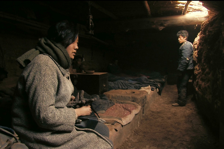 ワン・ビン:それぞれの映画を撮る時に、それぞれの苦難にみまわれる。その色々な大変なことっていうのは毎回同じではないのですが、特にこの映画の場合は劇映画ですので、俳優が加わってスタッフも多くなるし大変なことが多いです。ロケの現場は、本当に周囲に何もない所なのです。我々がロケのキャンプとして住んだところは、もともと現地に枠組みだけできてる家屋があったんです。そこはまだ全然内装ができていない状態でした。それで、そこにヒーターを入れたり、台所を作ったり、お風呂を作ったり、スタッフやキャストが住む家屋を作ることから始めたのです。もちろんクランクインする前の準備段階で作ったわけですけれども、その家屋の周囲30kmには何もない。他に家も建っていません。本当に砂漠の中で、映画に出て来るようなあの雰囲気の所で、皆暮らしていたわけなんですね。実際、撮影に入ってからはロケの進行を助けてくれる人はかなりいました。誰の邪魔も入らずに静かにちゃんと撮り終えることが出来るように、多くの人が助けてくれました。
