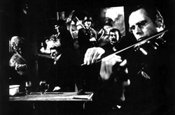 ![]() | 『ヨム・ヨム』 イスラエル=フランス/1998年/97分/35ミリ/カラー/英語字幕付 出演:モシェ・イヴギ、ハナ・マロン、ユーセフ・アブ=ワルダ、ジュリアーノ・メール、ケレン・モール 《都市三部作》の第二作・ハイファ篇。アラブ人の父とユダヤ人の母を持ち、母にはヘブライ語でモシェ、父にはアラビア語でムサと呼ばれる中年男の憂鬱と危機をコミカルに映し出しながら、人間存在の矛盾のなかに共存への可能性の契機を探る。主人公にイスラエル映画界のスター、モシェ・イヴギを配役しつつ、その友人役を実際にアラブ/ユダヤ混血のジュリアーノ・メールが演じる。 「『ヨム・ヨム』では、ハイファでのアラブ人とユダヤ人が平和に共存していたという伝統を用いて、引き裂かれた忠誠心と心的機能停止に陥っている人々の物語をブラック・ユーモアあふれる語り口で語っている。ギタイが素晴らしいのは、この対立があらゆる出会い、街の市場から寝室、あるいはその先にまでどのように侵入していくかを示しているところだ。」(L. Camhi, 「ヴィレッジ・ヴォイス」、2001年2月20日) |