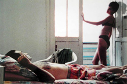 ![]() | 『プロミスト・ランド』 フランス=イスラエル/2004年/90分/35ミリ/カラー/英語字幕付 出演:ディアナ・ベスペシミ、ハンナ・シグラ、アンヌ・パリロー、 ロザムンド・パイク ユーセフ・アブ=ワルダ メナヘム・ラング シナイ半島の砂漠のある夜、身体を暖めるため、ひとつの火に集まる男女の一団。東欧からやってきた女たちと彼女たちを送り出すベドウィン族だ。翌日、売春組織へと売られる女たちを送り出すために、彼らはパレスチナに密入国する。競りにかけられ、人手から人手へ渡っていくディアヌと仲間たち。彼女たちはハイファのとあるナイトクラブに行き着く。 「『アリア』に引き続き、不法滞在の中国の労働者や、フィリピン人の家政婦、スラブ系の娼婦など"漂流を余儀なくされた人々"がひしめいている。ギタイはイスラエルを資本主義のグローバル化時代における大きな売春宿として描写している。映画の中の商品化され、国境や検問で受ける軽蔑を身にまとった身体の隷属の表現は、感情を無くした経済に征服された世界のメタファーとして現れてくる。」(ジャン=リュック・ドゥーアン、「ル・モンド」2005年1月12日) |