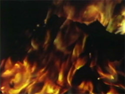 ![]() | 『火は紙を飲み込み、紙は火を飲み込む』 1973年/2分40秒/Super-8/カラー/サイレント/ビデオ上映 デザイン教室のために製作された、炎に包まれた紙についての習作。挿入字幕を含む全ては消費され、逆説的に投影される。 |
