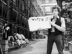 ![]() | 『ドント・ルック・バック』(Dont Look Back) アメリカ/1967/96分/35mm上映 監督:D・A・ペネベイカー 出演:ボブ・ディラン、ジョーン・バエズ、アラン・プライス、ドノバン フォーク・ロックムーヴメントの先駆者ボブ・ディランの、64年のイギリスツアーを追ったドキュメンタリー。アコースティック・ギターから転向した彼の、初のエレクトリック・アルバム"Bringing It All Back Home"に収録されている"Subterranean Homesick Blues"を冒頭に、ファンの嬌声と取材陣に迎えられてのロンドン空港到着の模様から始まり、約2週間にわたるツアーを、コンサート・シーンとプライヴェート・シーンを織り交ぜて映し出す。 |