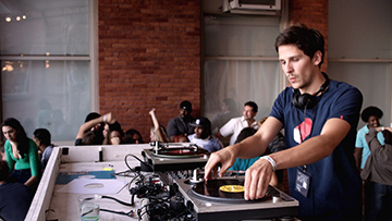 解放的な雰囲気の中、オープンスペースで行われるトークショー |