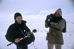 『砕氷船』(Bateau Givre/ Brise-glace) 1987年/フランス/35分/デジタル/カラー/英語字幕 監督:ジャン・ルーシュ 1988年ベルリン国際映画祭国際映画連盟賞受賞 氷原に閉じ込められてしまった船を連れ戻す任務で出発したスゥエーデンの砕氷船「フレイ(神)」に乗り込んだジャン・ルーシュは、船とその乗組員たちの日常の作業をキャメラにおさめる。これまでの撮影では体験したことのなかった白い氷が映す様々な色彩(船の鋼鉄が反射した色、空の雲の合間から差す色)で変化していく「光」や、「音」(機材の振動する音、波の音、氷の薄片が擦れ合う音など)と戯れて撮影が行われる。 |